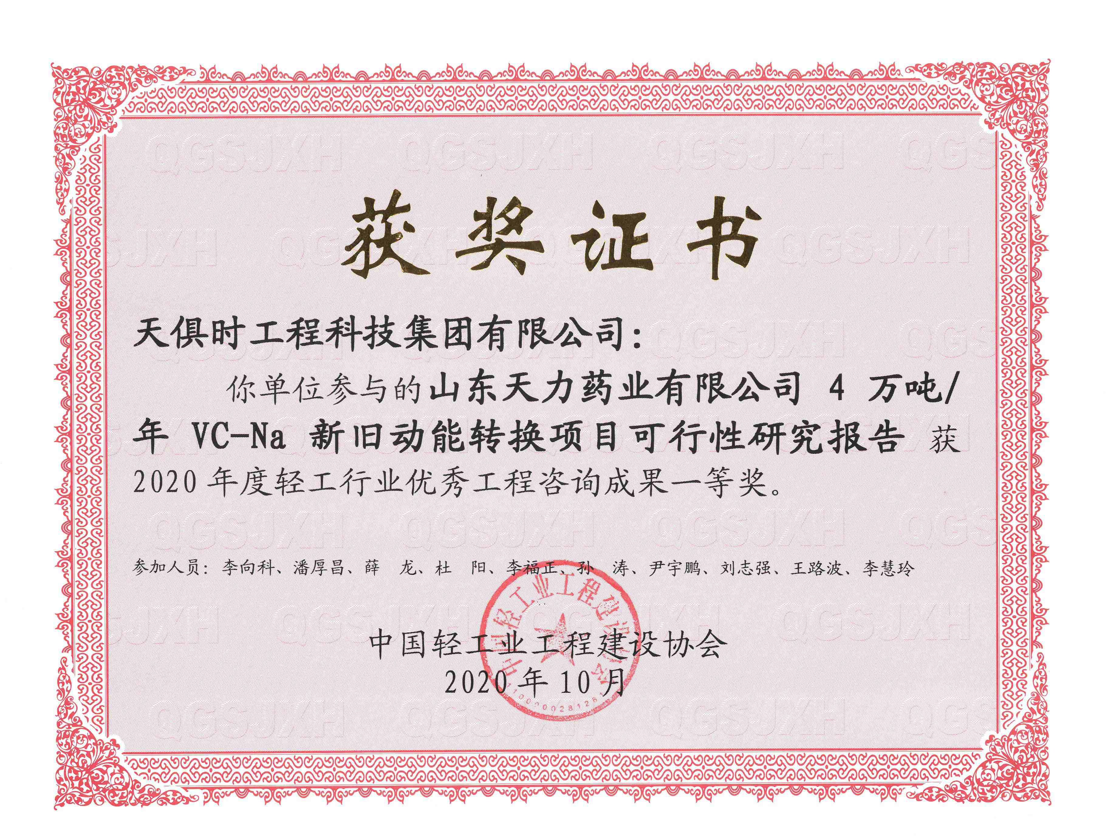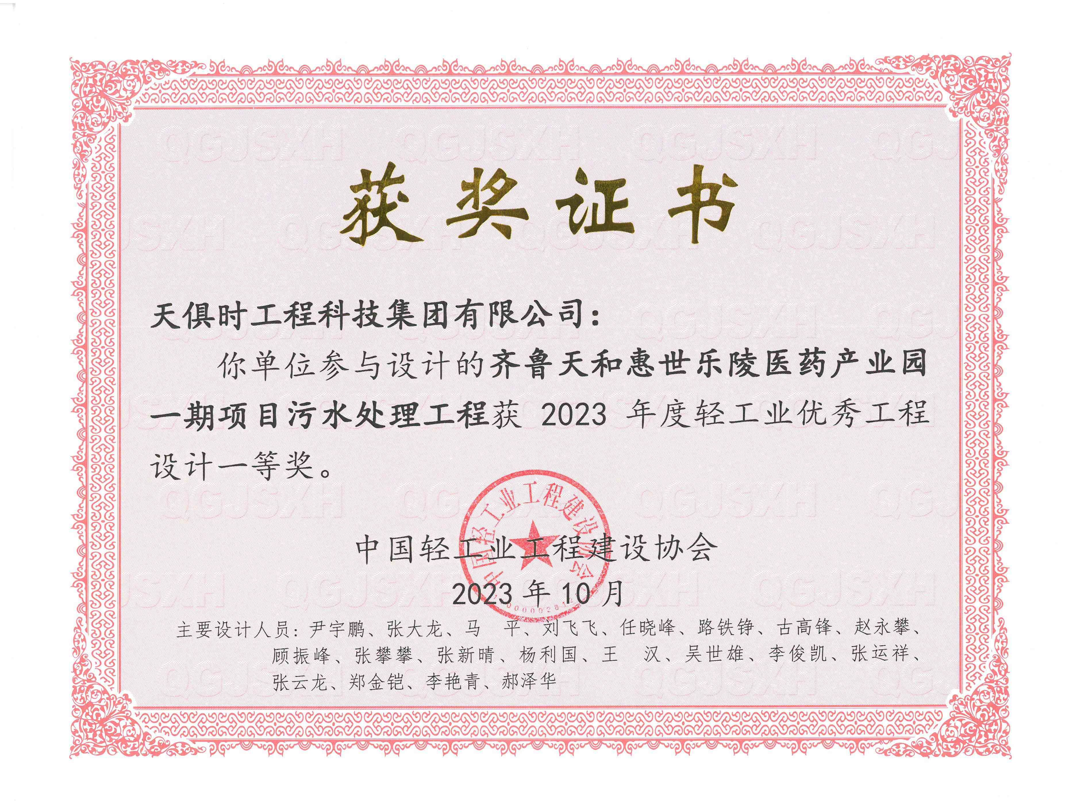 Light Industry Excellent Engineering Consulting Achievement Award